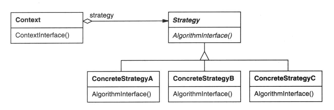 Context将它的客户的请求转发给它的Strategy。客户通常创建并传递一个ConcreteStrategy对象给该Context;这样,客户仅与Context交互。通常有一系列的ConcreteStrategy类可供客户从中选择。
