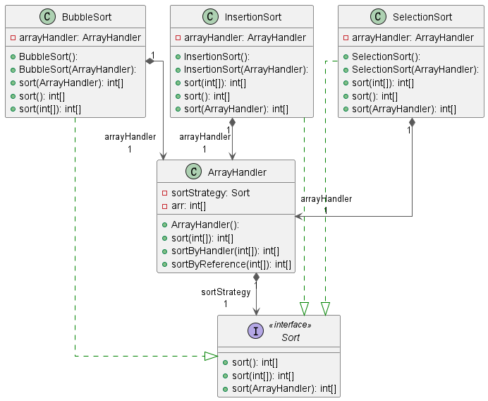 arrayHandler.setSortStrategy(new SelectionSort());