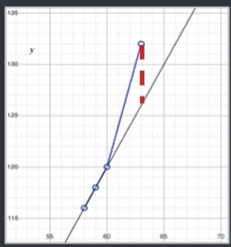 E(f_1;D)=\frac{1}{m}\sum_{i = 1}^{m}(f_1(x_i)-y_i)^2=\frac{1}{4}*\{[(3.286*58 -75.643) -116]^2 +[(3.286*59 -75.643) -118]^2 +[(3.286*60 -75.643) -120]^2 +[(3.286*63 -75.643) -132]^2 \}=\frac{1}{4}*3.8583=0.964575