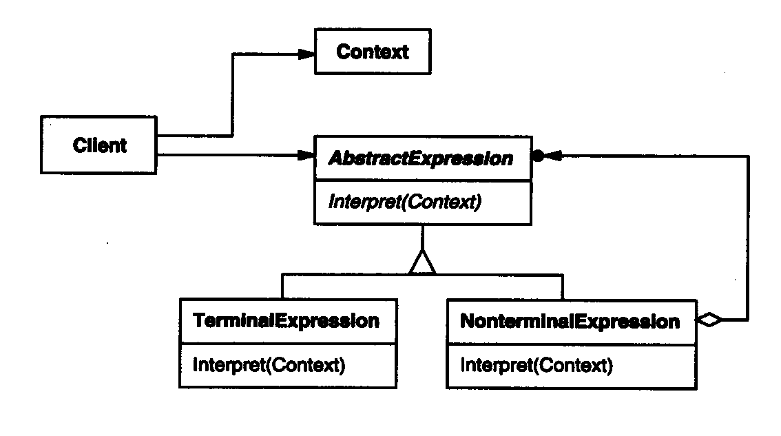 Client构建(或被给定)一个句子,它是NonterminalExpression和TerminalExpression的实例的一个抽象语法树。然后初始化上下文并调用解释操作。